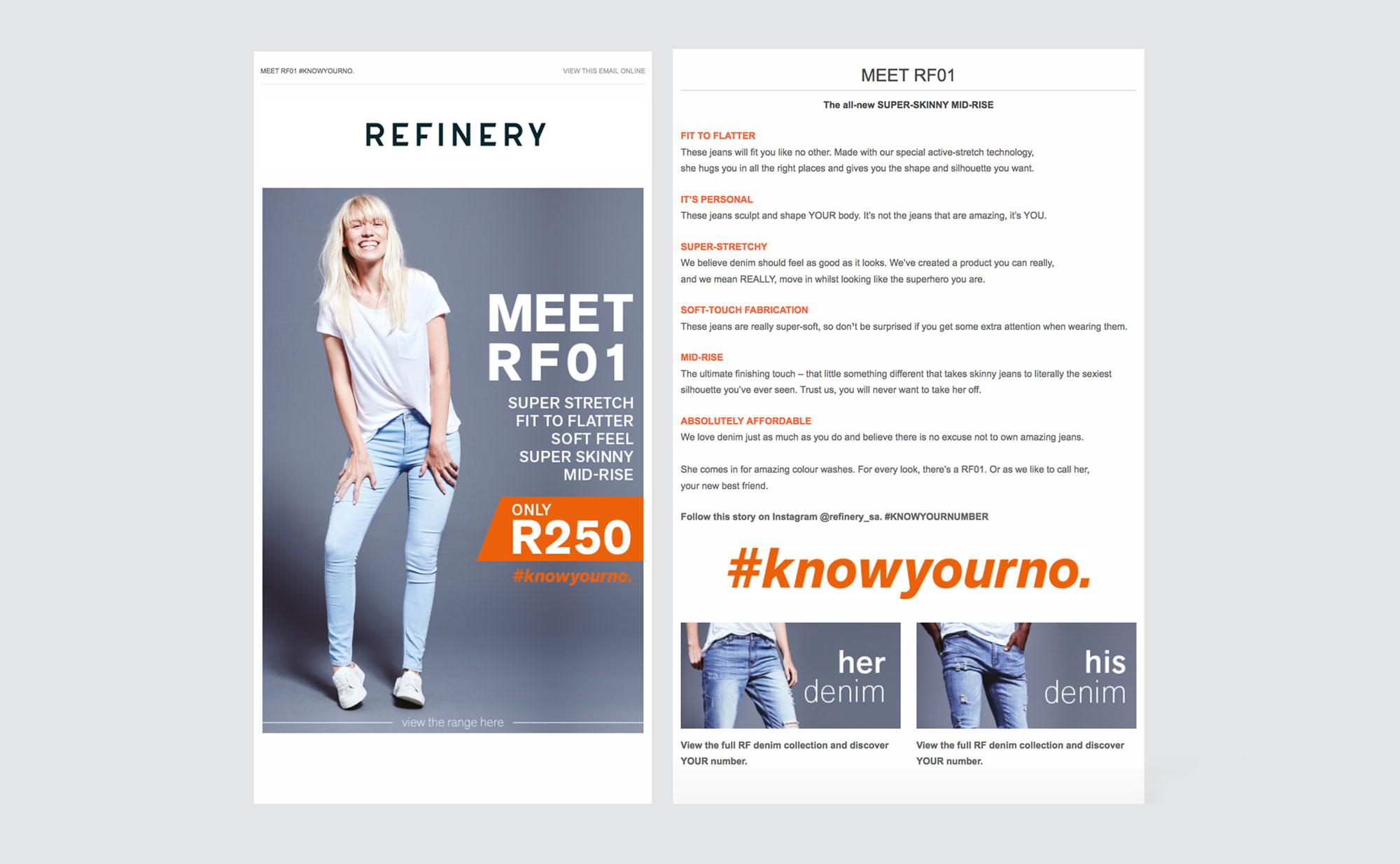 Refinery needed our assistance with marketing to, and communicating with, their 20–30 year old fashion-savvy shoppers. The communication needed to highlight that customers could get a huge range of quality casual wear at an unbeatable price. We aligned our work with our client’s mission statement, which is to provide every young South African with the finest quality apparel to build the look that suits them at a price they can afford. We developed a brand new design pack for in-store and online collateral that put Refinery’s great prices at the forefront of the customer’s mind. It was important to bring across quality and range in the communication, and this was achieved through the photography. The art direction of the shoots was relaxed, relatable and on-trend. The result was a consistent brand handwriting and customer journey across online and retail, aimed at significantly raising brand awareness and acquiring new customers.